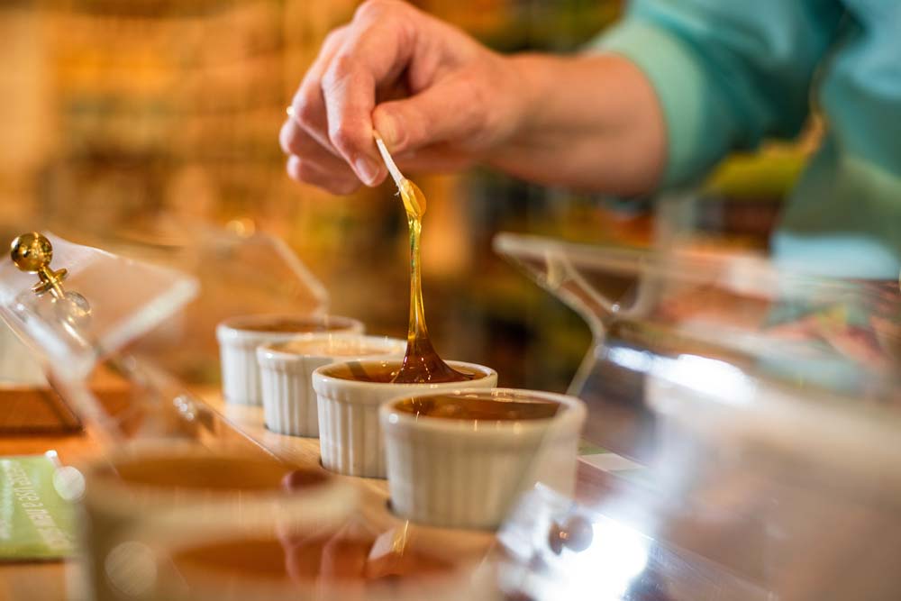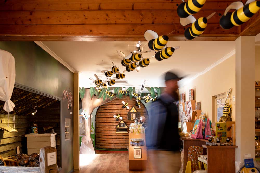 Interactive and audio-visual displays throughout the store bring to life the secrets of the honeybee. Learn about the history of beekeeping and how honey is produced around the world.