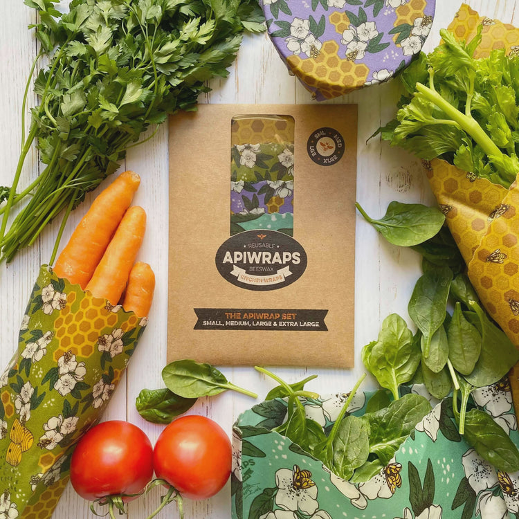 The full set – small, medium, large and XL (the famous HAM WRAP!) ready to keep your food fresh over and over again. Wash with soap and water and use them again and again. Apiwraps are made in Australia from top quality Australian beeswax.